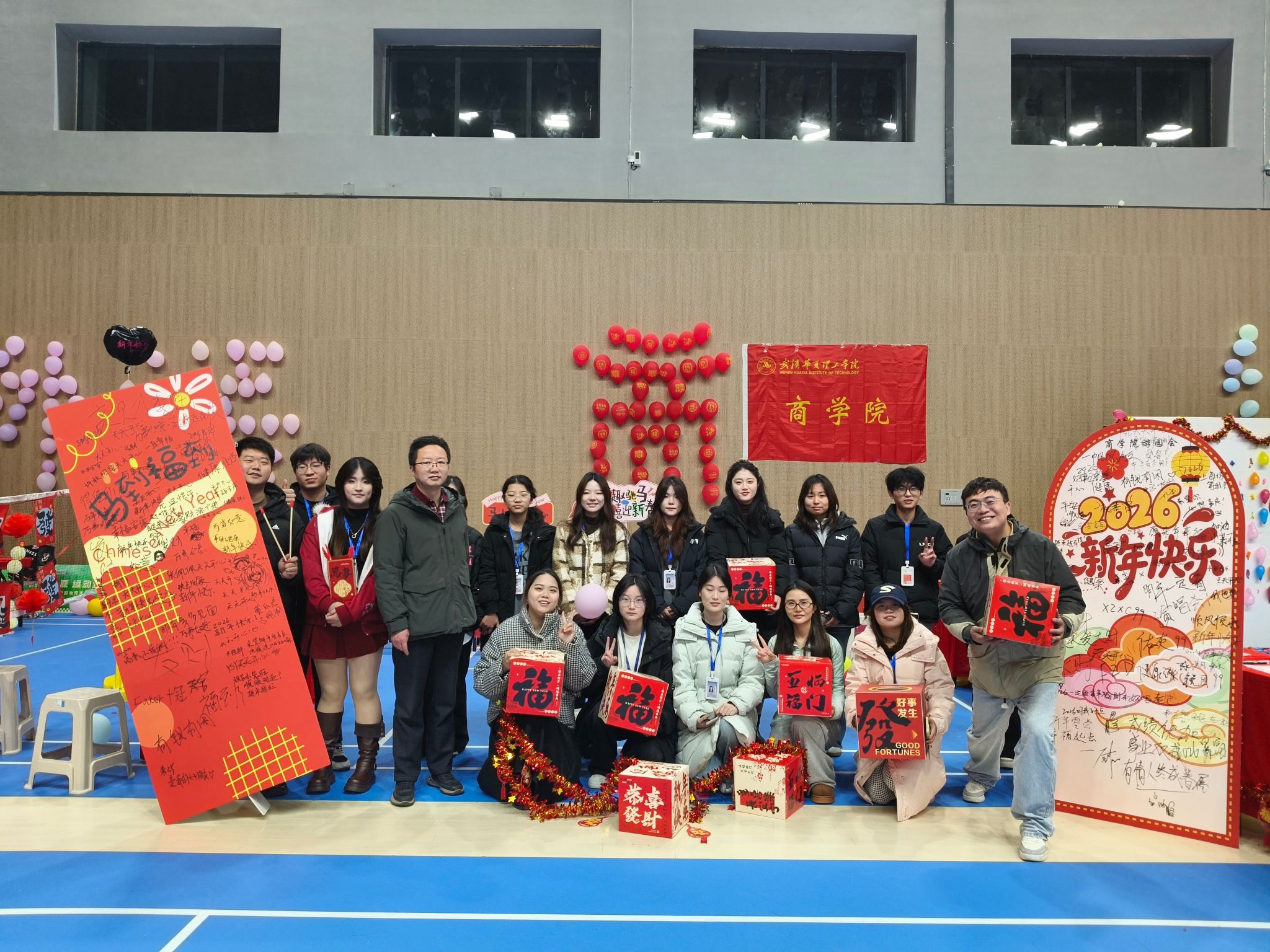 为弘扬中华优秀传统文化、营造喜庆祥和的节日氛围、增强师生归属感与仪式感,武汉华夏理工学院2026年“马跃新春 逐梦华夏”迎新年系列游园活动于2025年12月31日18:30-22:00在梧桐湖校区体育馆、大学生活动中心二楼、三楼等场地举办。全校师生齐聚于此,共赴这场辞旧迎新的新春盛会。