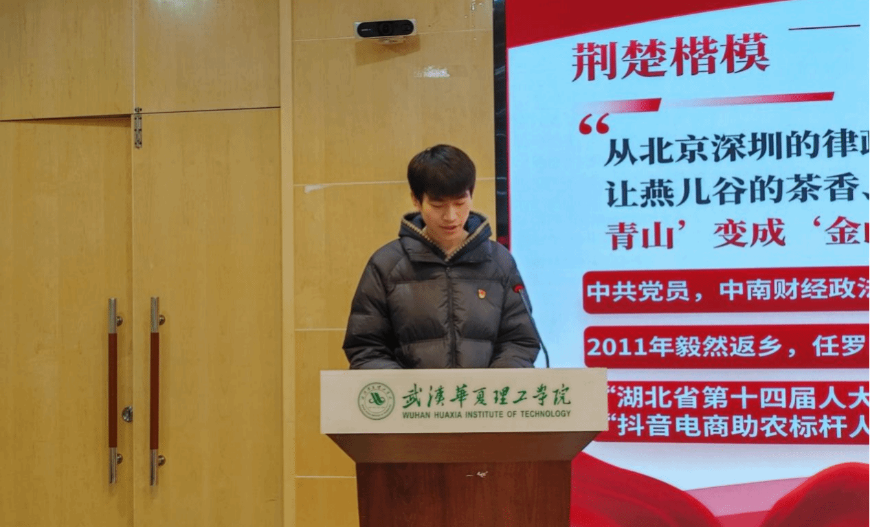 初心分享环节,吴雨豪以“寻光之路、逐光之行、秉光之责、续光之路”为脉络展开叙述。“寻光”时,高中志愿服务的经历让他埋下初心种子,荆楚楷模徐志新的感召更坚定了其入党信念;“逐光”中,他梳理了2021年递交入党申请、2022年成为积极分子、2023年成为预备党员的进阶历程;“秉光”阶段,他凭借四年学生工作经历与学科竞赛成果诠释党员担当。