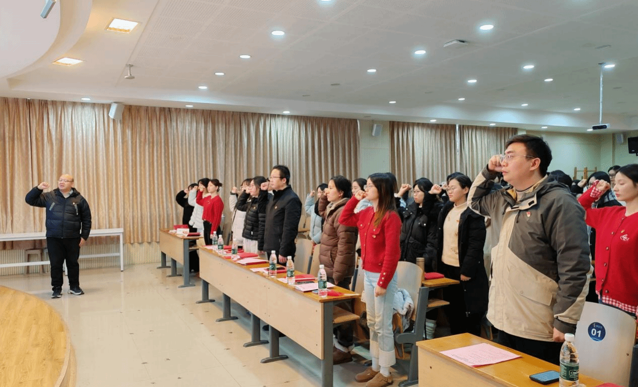 全体党员面向党旗庄严宣誓,重温入党誓词,铿锵有力的誓言回荡在教室,进一步坚定了大家的理想信念。活动现场还宣读了表彰文件,对34名优秀工作人员及23名“先进个人”予以通报表扬,激励全体党员见贤思齐、争先创优。