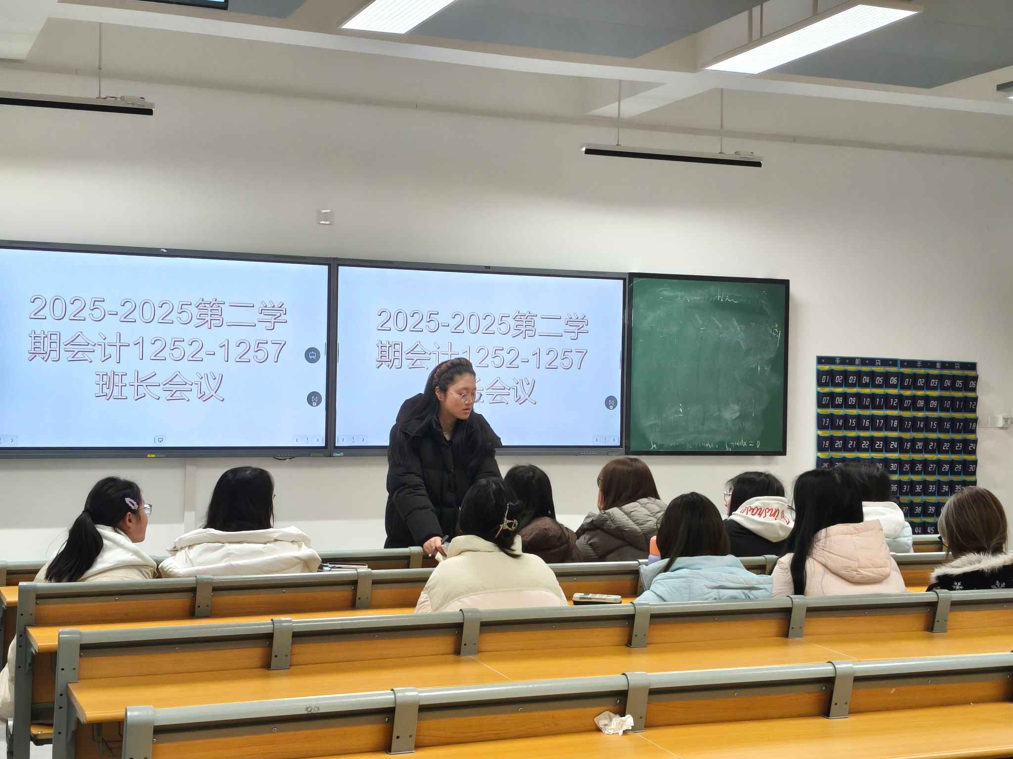 为扎实推进新学期班级建设工作,明确班级管理重点与团员推优标准,进一步强化学风班风和寝室文化建设;3月4日,会计1252-1257班新学期班委会议在教学楼C203召开。辅导员赵玉环及各班班长、团支书参加会议,围绕团员推优标准、寝室环境建设等新学期工作进行交流部署。