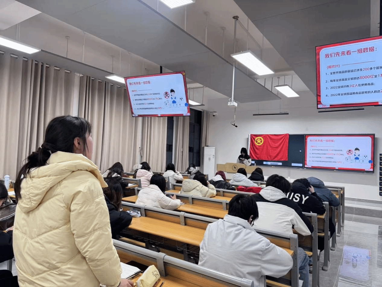 活动现场,主题团日活动正式拉开帷幕。经融(数智)1252团支部以“认清毒品危害,守护青春无毒”为核心,通过多样形式展开学习。禁毒知识讲解环节,团支书结合真实案例,深入浅出地剖析传统毒品与新型毒品的特征、危害,重点科普了“奶茶杯”“跳跳糖”“邮票”等伪装性极强的新型毒品的隐蔽性,提醒同学们提高警惕,坚决拒绝陌生人提供的零食、饮料;互动问答环节中,“毒品的主要种类有哪些?”“青少年如何应对毒品诱惑?”等问题引发热烈讨论,团员们踊跃发言,分享自身对禁毒的认知与思考,在交流中深化对毒品危害的认识;情景模拟环节,团员们分别扮演“诱惑者”与“抵制者”,生动还原校园、社交场景中可能遇到的毒品诱惑情境,通过沉浸式体验,熟练掌握“坚定拒绝、及时求助”的应对方法。