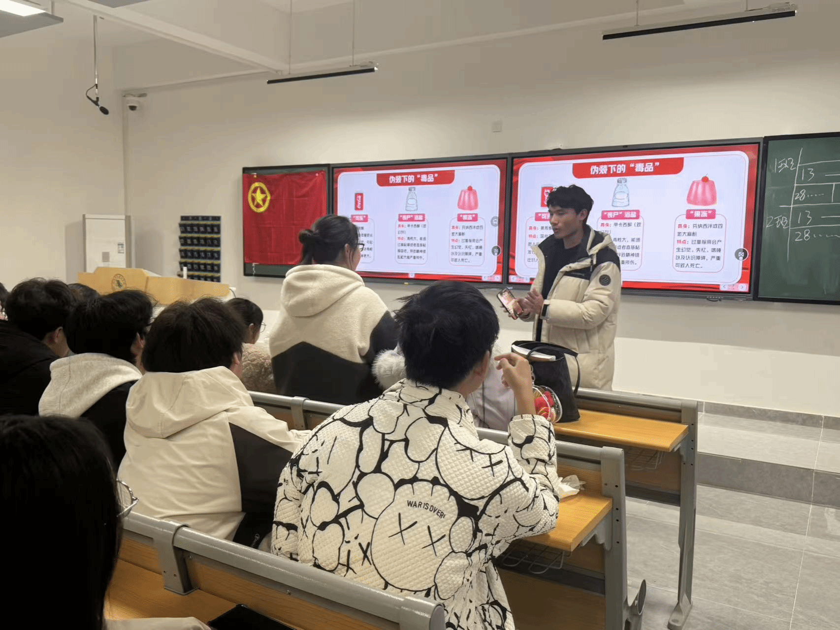 会议筹备阶段,班委团队精心策划,通过班级群提前发布禁毒科普短视频、涉毒案例节选,营造“人人关注禁毒”的预热氛围。会议现场,班主任结合真实案例,深入浅出地剖析了传统毒品与新型毒品的危害,重点讲解了“跳跳糖”“奶茶粉”等新型毒品的隐蔽伪装技巧,以及涉毒行为带来的法律后果与人生影响。随后的互动问答环节,同学们踊跃发言,围绕“如何拒绝陌生人递来的可疑物品”“发现涉毒线索该如何处理”等问题展开热烈讨论,现场学习氛围浓厚。