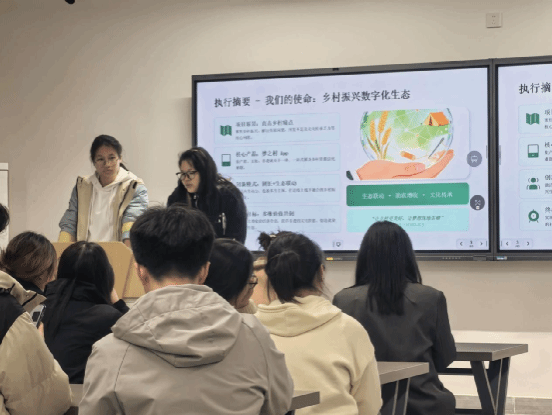 在项目展示环节,各参赛团队依次登台,通过精美的PPT演示和条理清晰的陈述,向评委和观众展示了他们的创业蓝图。参赛项目涵盖了数字经济、文化创意、民生民意、乡村振兴等多个领域,充分体现了我校学子敏锐的市场洞察力和跨学科融合的创新思维。选手们从项目背景、产品介绍、商业模式、财务分析及未来规划等方面进行了详细阐述,展现出扎实的专业素养和昂扬的创业激情。与创新氛围浓厚。
