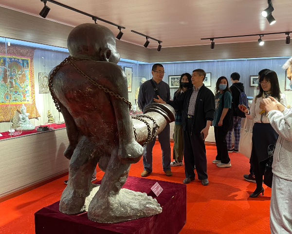 首先进行了开幕式,开幕式过后,韩老师、郝老师和同学们一同参观武汉达临性学生命文化博物馆。馆内藏品特殊、罕见、珍贵,甚至不乏大尺度画面的古代性文物展览,里面充满了浓厚的学术气氛和和文化气息。从北魏,包括春宫图、古代男女交合雕像瓷器、古代民间进行性教育的“压箱底”、“嫁妆画”等。听着馆长介绍很多古代性展品,同学们更加了解相关的性文化。