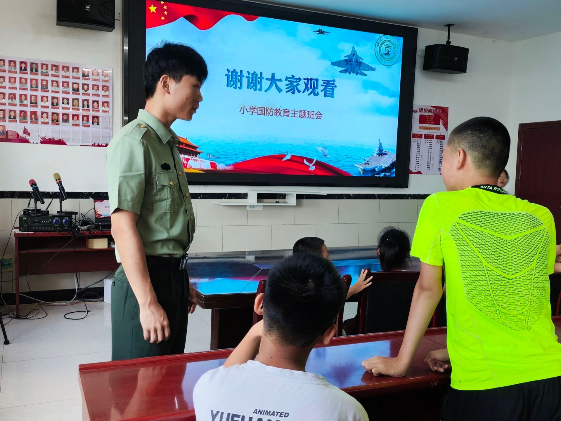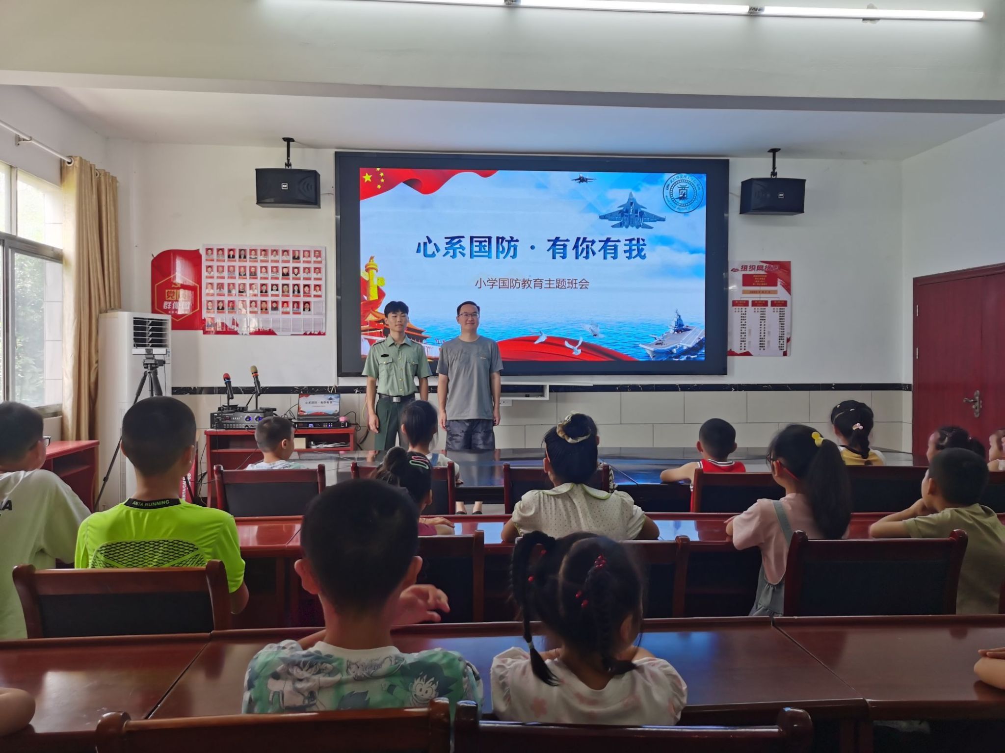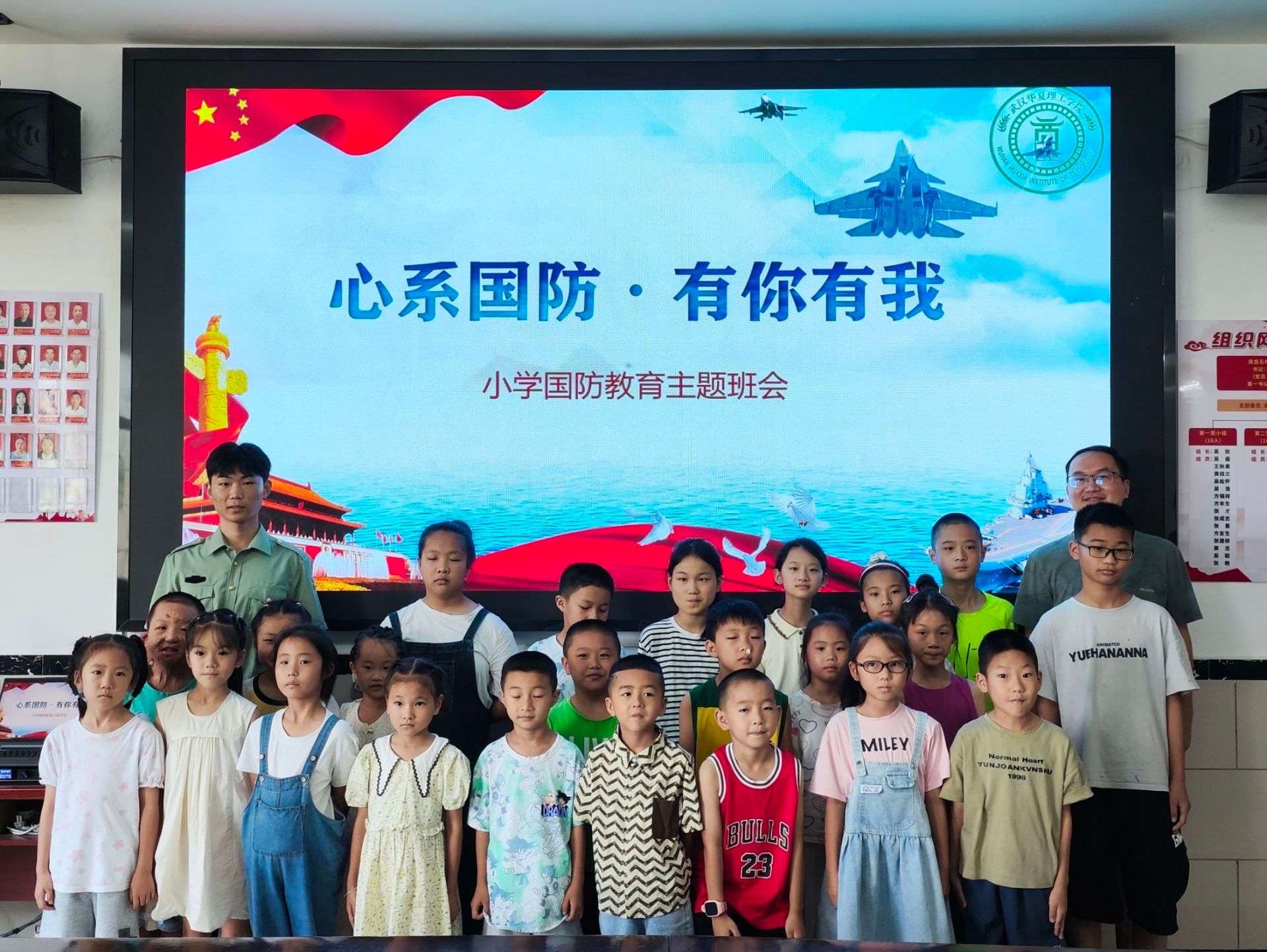 为响应党的号召,进一步普及国防教育,增强群众国防观念,弘扬爱国主义精神,提高孩子们的国防意识,激发孩子们的爱国热情,2024年7月16日上午,武汉华夏理工学院瑶光乡村振兴实践队于湖北省蕲春县席盘石村党员群众服务中心开展了国防教育课程 。