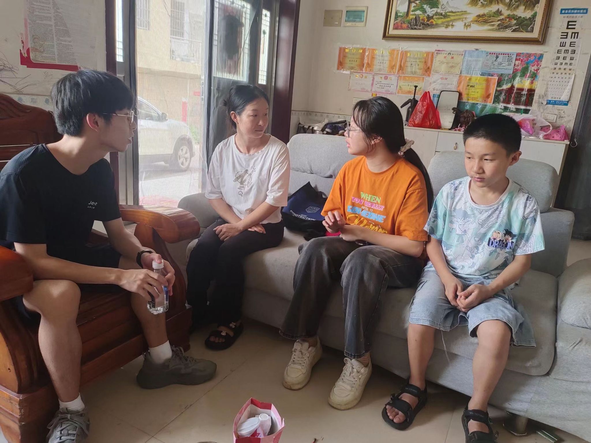 家访,是一场美丽的教育行走。家访活动的开展,能够拉近老师与学生间的距离,让支教组成员深入了解学生的家庭与生活状况,更好地进行后期教学工作,让爱在不经意间绽放。7月23日上午,支教组积极响应号召,利用课余时间深入乡村,走进学生家里,与学生及家长进行亲切交流。实践队成员们分批次前往不同的孩子家里面,在放学后与孩子及其家庭“零距离”接触,了解孩子的家庭基本情况、学习习惯,兴趣爱好等等。实践队成员通过与学生家长的沟通,能够较为快速、准确的了解孩子的性格、习惯、平时表现等等。在家访过程中,支教队员不仅详细询问了孩子们的学习和生活情况,还耐心听取了家长们的意见和建议,共同探讨了如何为孩子们营造更好的成长环境。