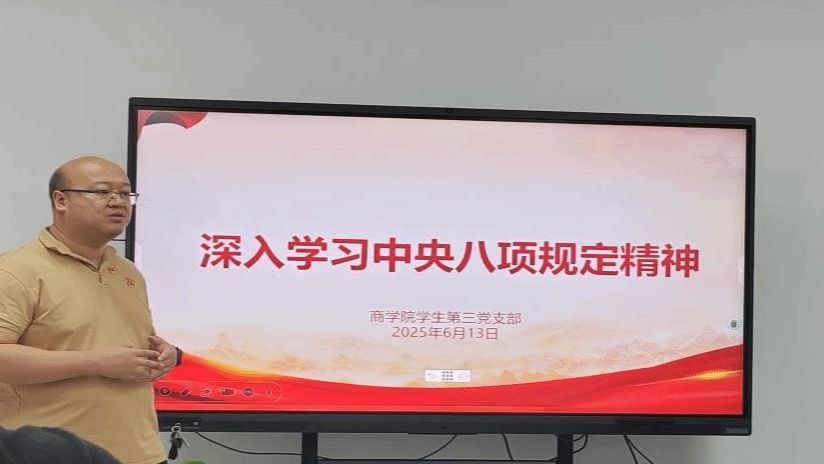 6月13日,商学院学生第三党支部在综合楼一楼事务中心XG12组织开展“深入学习中央八项规定精神”会议。会议由支部书记刘浩波主持,支部党员、预备党员参加学习,会议通过理论讲解、案例剖析与榜样示范,引导青年党员深刻领会中央八项规定精神的内涵与实践要求,筑牢廉洁自律思想防线。