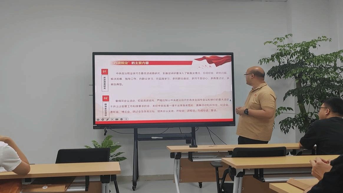 会上,刘浩波老师首先引导与会人员重温了中央八项规定的制定背景和核心内容。他从2012年12月4日中共中央政治局会议审议通过这一重要文件的历史节点切入,详细阐述了包括“改进调查研究”、“精简会议活动”、“精简文件简报”等在内的八项具体要求,并着重指出这是新时代推进全面从严治党的开篇之作。同时,他指出中央八项规定的精神实质是:厉行勤俭节约、反对奢侈浪费和奢靡之风、廉洁从政、工作作风务实等。