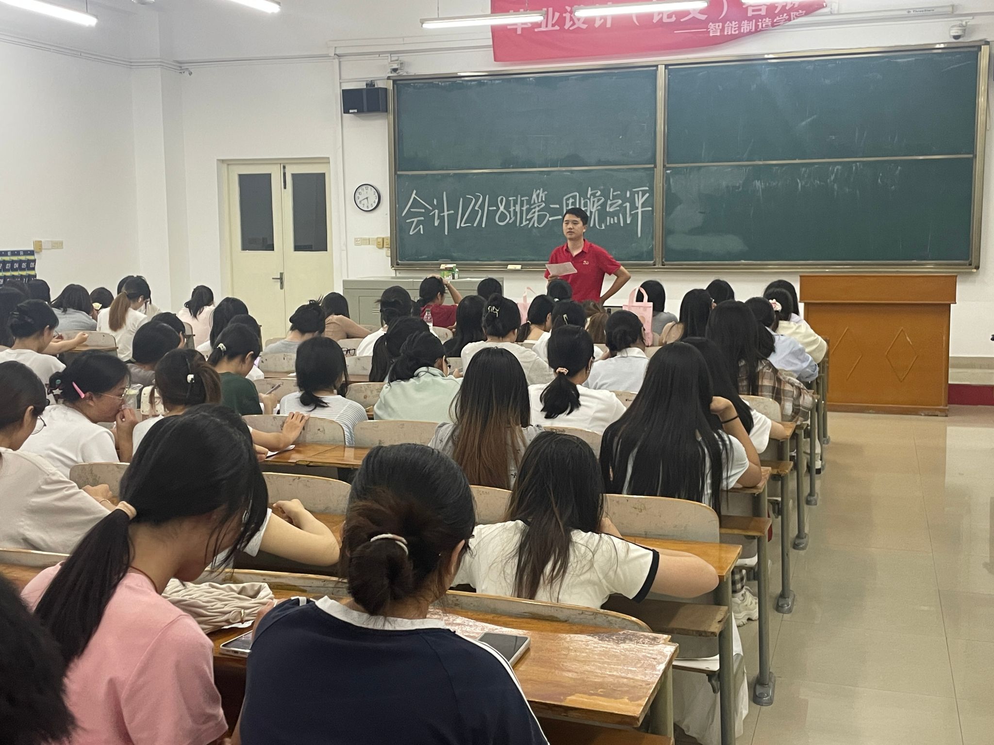 告别暑期,重返校园,大三学年的关键征程已然开启。2025年9月7日晚,我院2023级会计系全体学生齐聚教学楼3-201,开展本学期第二周晚点评活动。本次晚点名聚焦大三学年关键节点,围绕安全防护、学业规划、生活保障等核心内容展开,为同学们明晰学年重点,筑牢成长根基。