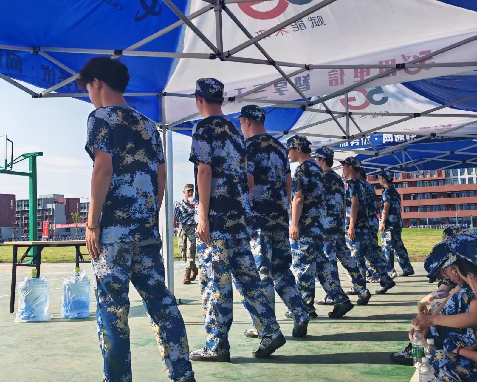 烈日高悬,无情地炙烤着大地,也烘烤着正在训练的同学们。那炽热的阳光将他们的影子拉得很长很长,然而影子中的身影却始终挺拔如松,没有丝毫弯曲。晶莹的汗水不断从额头冒出,顺着脸颊滑落,在迷彩服上留下了一道道深色的痕迹,这些痕迹恰似一枚枚特殊的勋章,无声地记录着同学们在训练过程中的坚持与付出,彰显着他们不屈的精神。