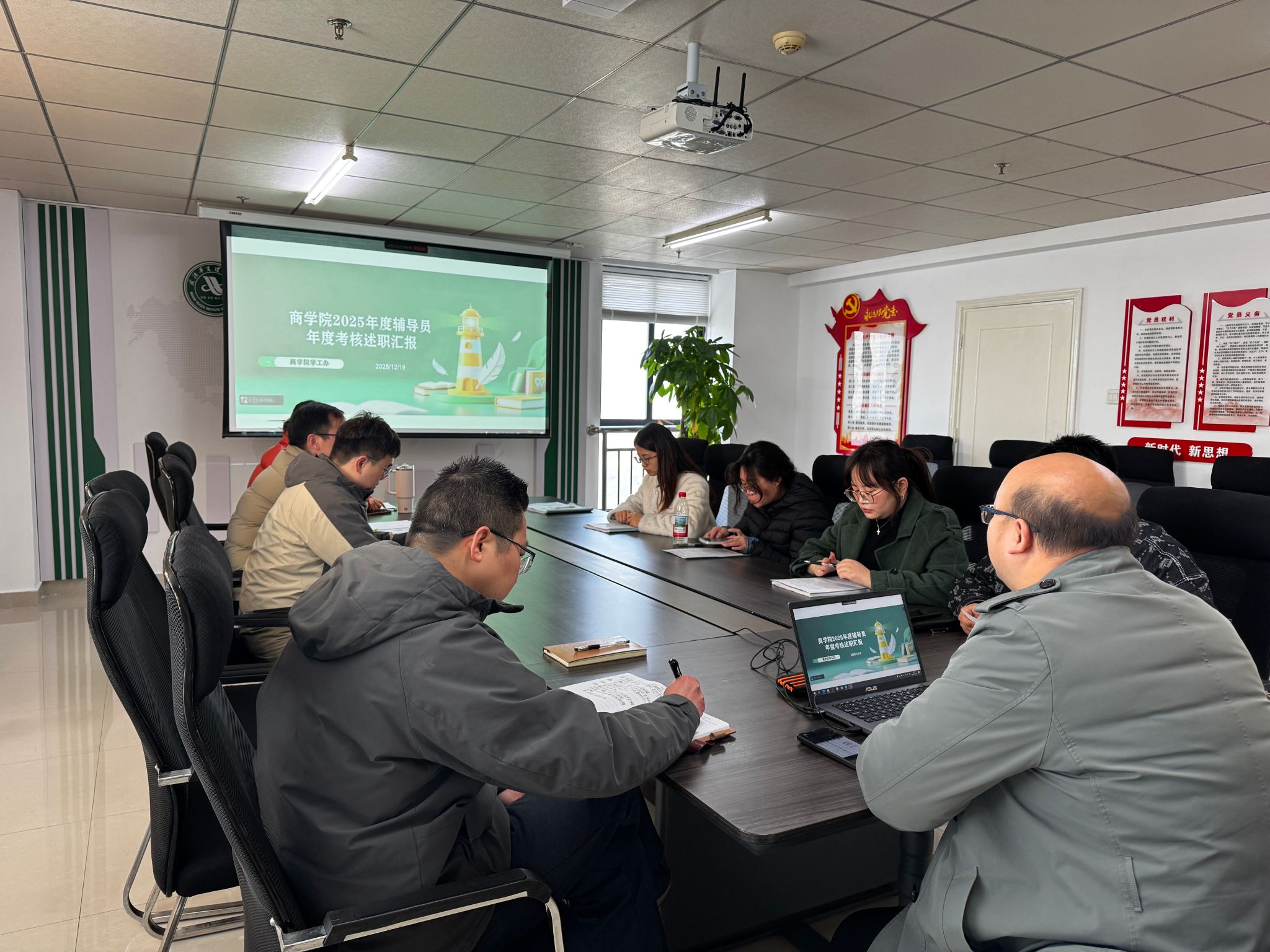 12月19日上午9时,商学院2025年度辅导员考核述职报告总结会在学院819会议室召开。商学院党总支副书记孙文胜、办公室主任刘浩波、组织员杨洋及全体辅导员参加会议。本次述职总结会旨在全面回顾本年度学生工作成效,系统梳理育人实践中的经验与不足,进一步明确新一年度辅导员队伍建设方向,为持续提升学院思想政治教育质量与学生管理服务水平奠定坚实基础。