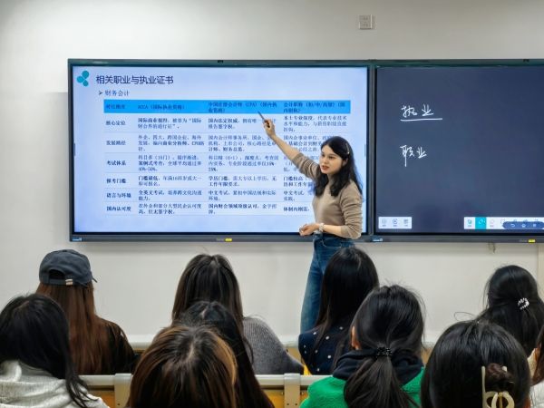 班会重点围绕四项内容展开。首先,班主任详细介绍了会计专业毕业生的工作去向,涵盖企业财务、会计师事务所、金融机构、政府财税部门等主要就业领域,分析了各行业岗位特点与发展前景,帮助同学们建立清晰的职业认知。随后,班主任系统梳理了会计相关职业证书体系,重点讲解了初级会计职称、注册会计师(CPA)、管理会计师(CMA)等证书的报考条件、考试内容与职业价值,建议同学们结合自身规划早做准备、循序渐进。接着,班主任全面介绍了会计专业课程体系,从会计学原理、成本会计到成本会计、审计等核心模块逐一说明,明确了各学期学习重点与能力培养目标,助力同学们尽快补齐专业基础、融入新的学习节奏。最后,班主任着重推介了“挑战杯”、“全国高校商业精英挑战赛”等学科竞赛,鼓励同学们以赛促学、以赛促练,在实战中提升专业技能与综合素质。
