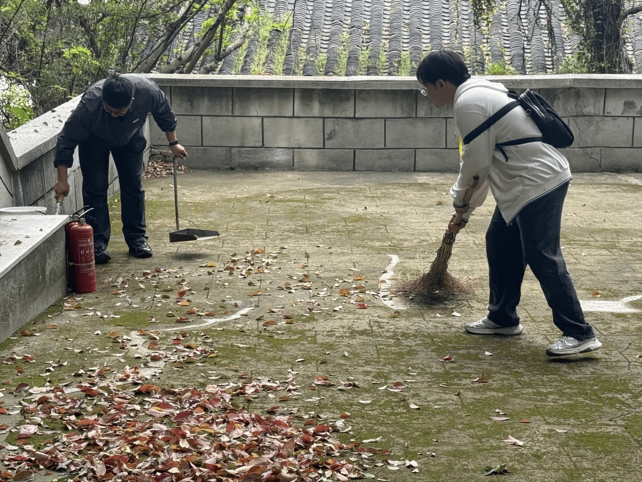 随后,学生代表带领全体师生重温入团誓词并发表的主题演讲,深情回顾了革命先烈的奋斗历程,号召全体师生以先烈为榜样,将爱国之情转化为报国之行。铿锵有力的誓言回荡在陵园上空,彰显着新时代青年传承红色血脉、勇担时代使命的坚定决心。祭扫仪式结束后,师生们分组开展园区垃圾清扫工作,用实际行动守护英烈安息之地。上午11时,两校区祭扫活动圆满结束,全体师生集合合影留念后有序离开。