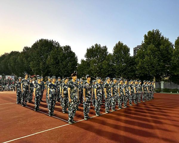 在骄阳下,操场上,我们看到同学展示才艺,听到训练时嘹亮的口号。在训练时我们全神贯注,在休憩时我们欢声笑语。绿茵茵的青草和橄榄绿的迷彩军装相互辉映,让同学们显得活力十足。军官们严格要求新生整理军容和端正军姿,不时亲自示范,并手把手纠正基本的动作,同学们在英姿飒爽的军官的带领下认真训练,丝毫没有半点偷懒。