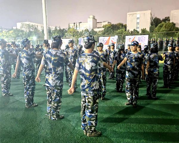 清晨,我们早早的就站在了塑胶跑道上等待着教官的命令。早上的天气格外凉爽,直到下午也没有很大的太阳,因此到了晚上,体力依旧旺盛的我们在训练小有成就的情况下,各团组织了不同的活动。整个操场洋溢着同学们的歌声和笑声。嘹亮的军歌不断震撼学生们的内心,歌声中内涵的军人们舍弃儿女情长、告别家乡报效国家的坚定意志让我们渴望着成长、渴望着早日担起祖国重仁。