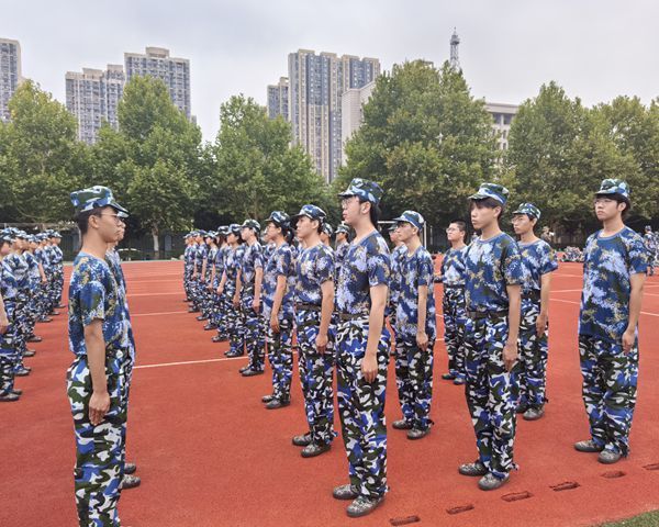操场上,整齐的步伐声和嘹亮的口号声交织在一起。同学们身着统一的迷彩服,个个精神抖擞。在教官的严格指导下,他们认真地练习着站军姿、踢正步等动作。虽然汗水湿透了衣衫,但他们的眼神中却充满了坚定。