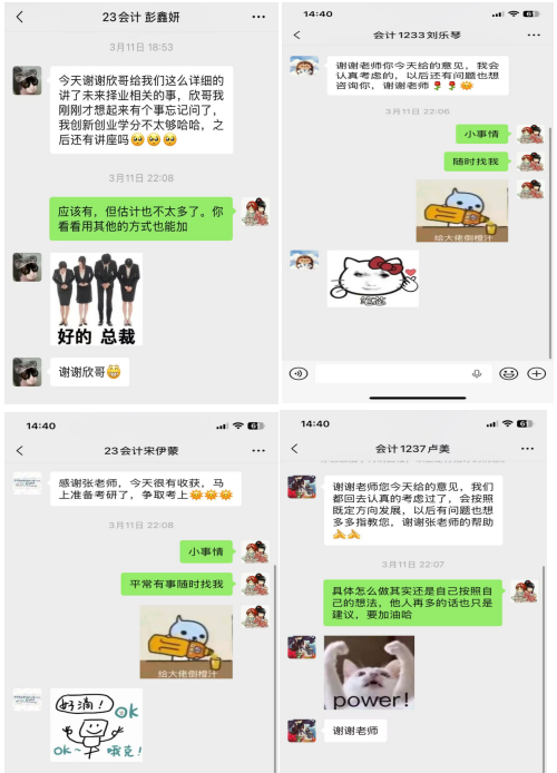 此次就业及未来规划交流沙龙,是教师精准对接学子需求、落实育人职责的重要举措通过一对一面对面的精准指导,真正做到“一人一策”,帮助学子们在考研、考公、就业岔路口找准方向。未来,教师将持续开展各类职业规划指导活动,以更贴心、更精准的服务,助力学子逐梦前行,在各自的人生道路上绽放光彩。