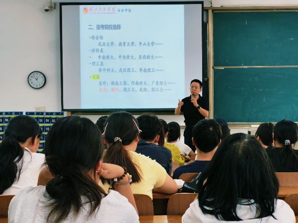9月4日下午4点,湖北经济学院会计学院副院长余浪副教授应财会系邀请在武汉华夏理工学院教学楼1号楼307教室,为会计专业大四学生进行了一场关于研究生招生政策的专题宣讲会。此次宣讲会的主题为“研招政策解读与就业形势分析”,旨在为同学们提供研究生招生的最新信息,并帮助他们更好地了解当前的就业趋势。