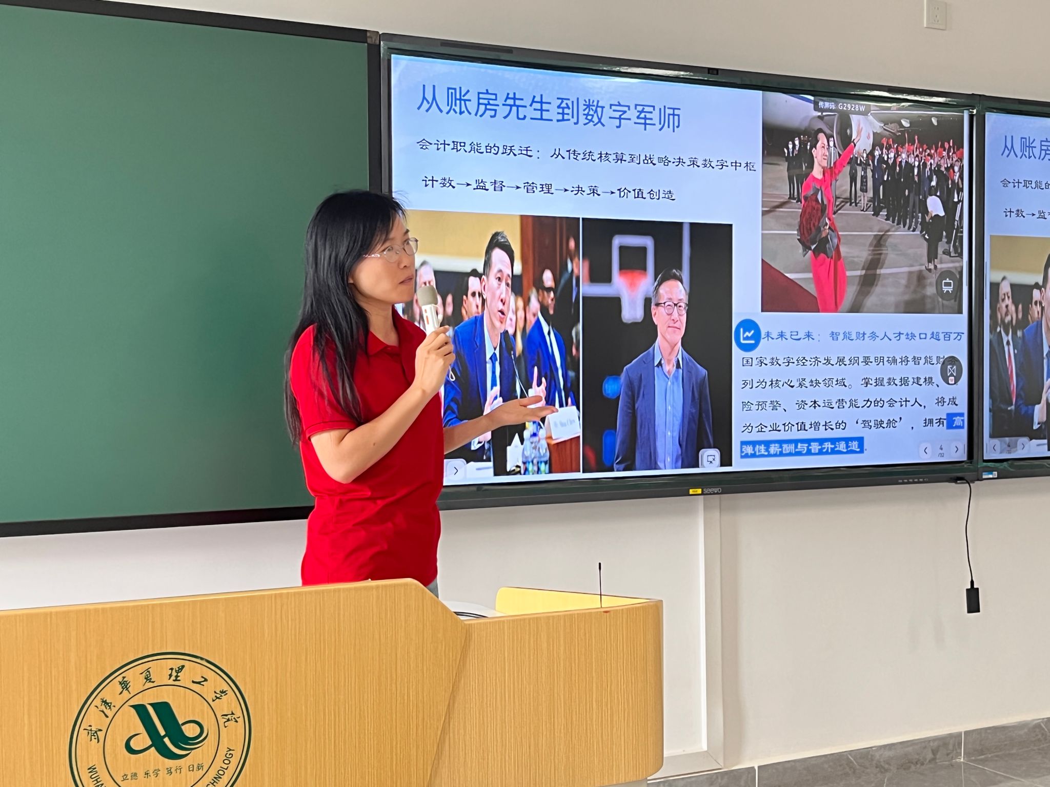 林波老师围绕会计专业的发展历程、就业前景、专业方向、师资力量、实习就业基地、课程与教材建设以及人才培养方案等方面展开详细讲解,使同学们对专业学习内容与未来发展方向有了更加清晰的认识。徐玄玄老师则以“从账房先生到数字军师”为主题展开分享,指出在人工智能、大数据等技术广泛应用的背景下,会计岗位正由传统核算型向智能管理与决策支持型转变,鼓励同学们主动适应数字时代,努力成为具备综合素养的复合型财务人才。