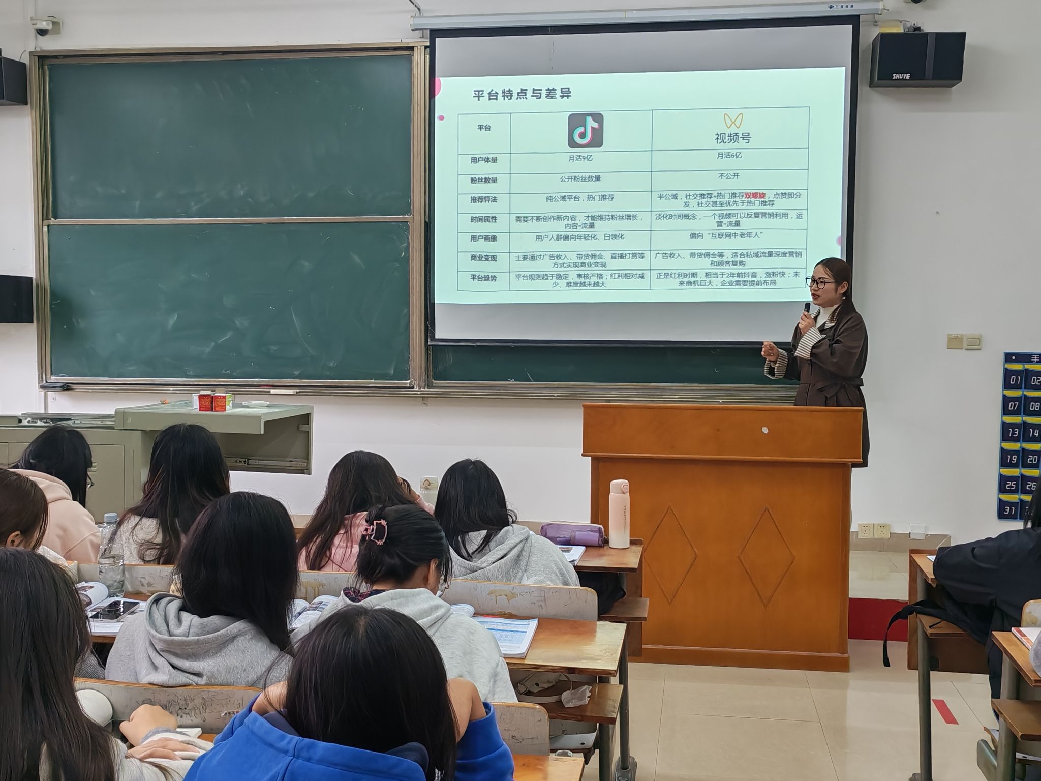 为了让工商管理的学生在《短视频策划制作与运营》的课程中了解到新媒体行业的最新动态和短视频运营的实战操作技巧。10月21日,运营管理系杨沛老师特邀紫善文化传媒公司的资深运营专家曹小刚老师和紫善老师为企业导师走进课堂,给工商1231班的全体同学举办了主题为“短视频账号运营实战”的专题讲座。两位企业导师为同学们带来了干货满满的短视频账号运营的实战分享,将行业前沿动态与实操经验直接带入课堂,受到了学生的热烈欢迎。
