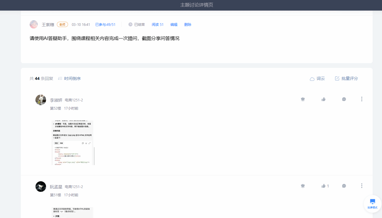 该课程答疑助手聚焦网页制作基础语法、代码纠错、样式调试、实训任务解析、学习方法指导等核心需求,能够为学生提供即时答疑、案例讲解、错误分析、步骤示范等实用功能。学生在随堂练习、课后作业、预习复习时,遇到代码报错、标签使用不清、布局思路不明等问题,均可通过答疑助手快速获得通俗易懂的解答,有效解决了“疑问无人答、问题拖成堆”的学习难题。相较于传统答疑方式,这款AI答疑助手具有操作简单、响应快速、贴近教材、实用性强等优势,无需额外安装软件,降低了学生的使用门槛。它不仅能帮助基础薄弱的学生快速查漏补缺,也能为学有余力的学生提供拓展思路,真正实现了个性化、陪伴式学习辅助,让AI工具真正用在日常、用在实处。自投入使用以来,受到学生的普遍欢迎。大家表示,有了AI智能答疑助手,学习网页制作更有底气,遇到问题能随时解决,学习积极性和明显提升。