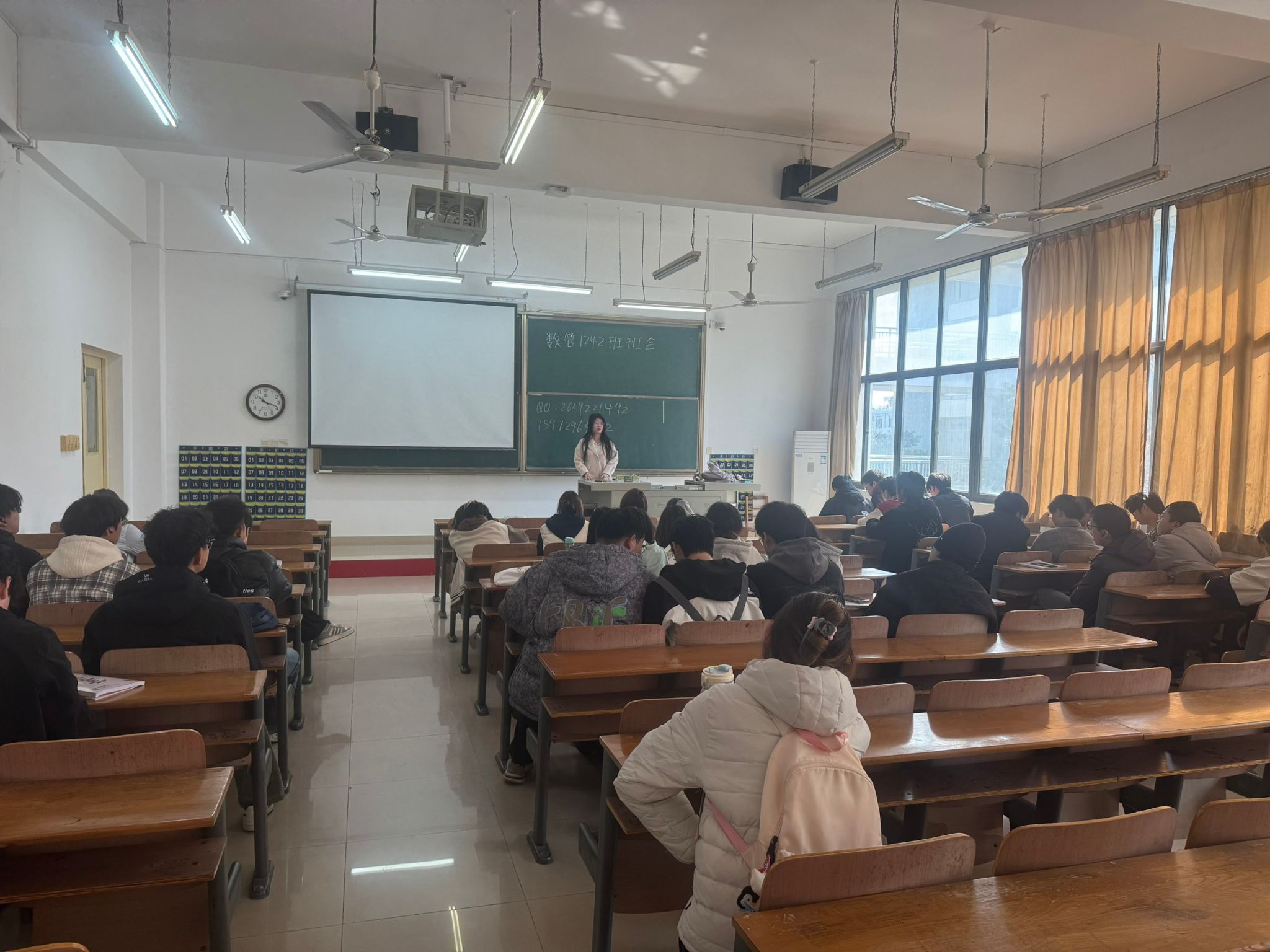 为帮助同学们明确新学期学习目标,规划学业发展方向,凝聚班级奋进力量,3月13日,数管1242班在1-307教室召开新学期主题班会。班会由班主任夏梦杰老师主持,全班同学共同参与,围绕英语四六级备考、学科竞赛参与、专业课学习、个人规划及阅读计划等核心内容展开部署与交流,为新学期班级发展与个人成长明确方向。