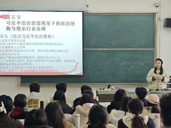 商学院会计1241-5班开展税务会计实务课程,围绕习近平法治思想,通过理论讲解与娱乐行业案例分析,引导学生深刻理解依法纳税、维护社会公平的重要性。在课程开篇,授课教师从习近平法治思想核心理念切入,强调依法治国、法治思维在税务管理中的关键作用。