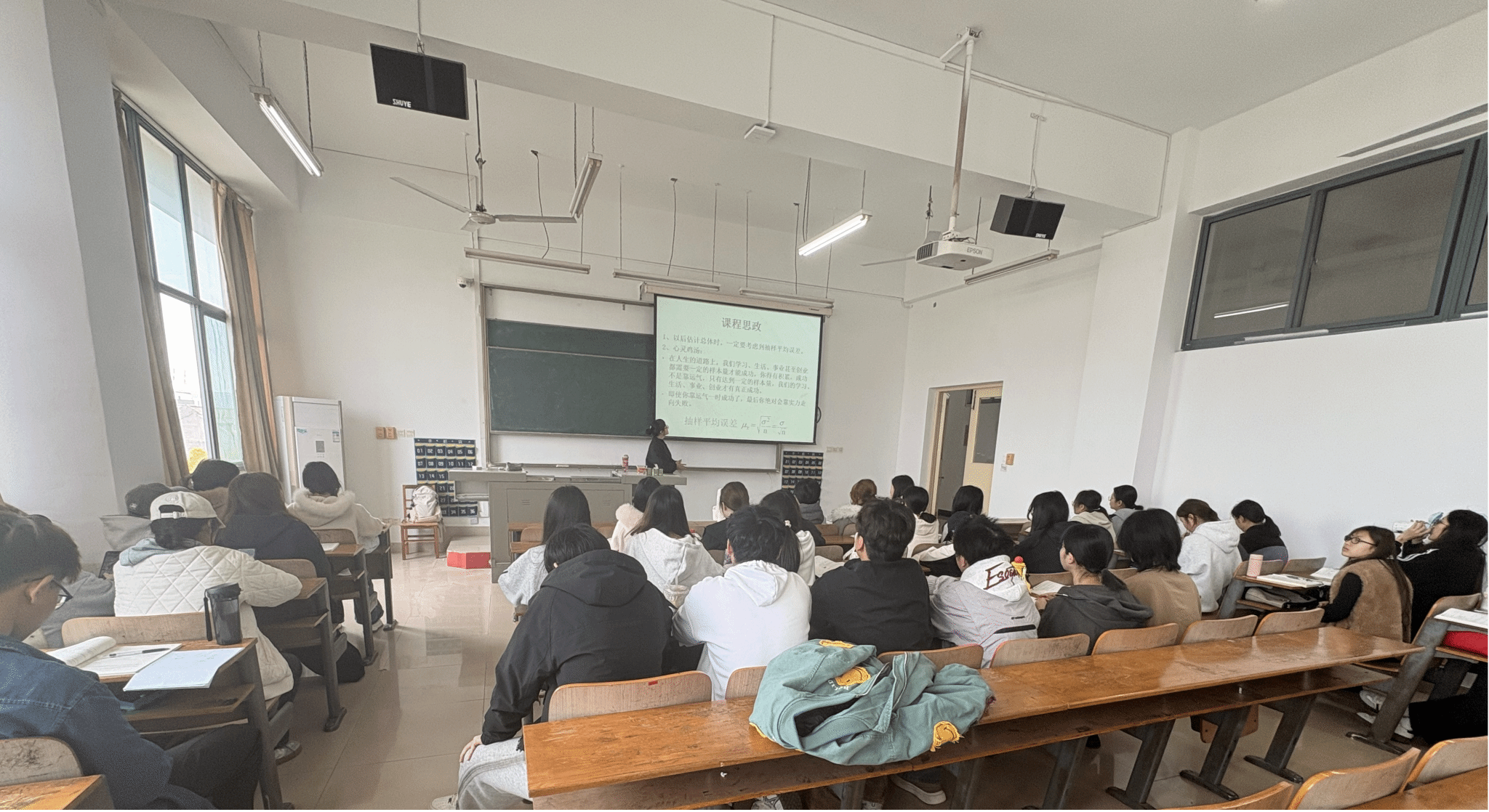 4月2日上午第1-2节课,在1-403教室,晏老师为同学们带来了一堂别开生面的统计学课程。本次课聚焦于参数估计中的核心概念——抽样平均误差,并在严谨的公式推导与实例分析中,巧妙融入了课程思政元素,引导学生在掌握专业知识的同时,感悟人生哲理。