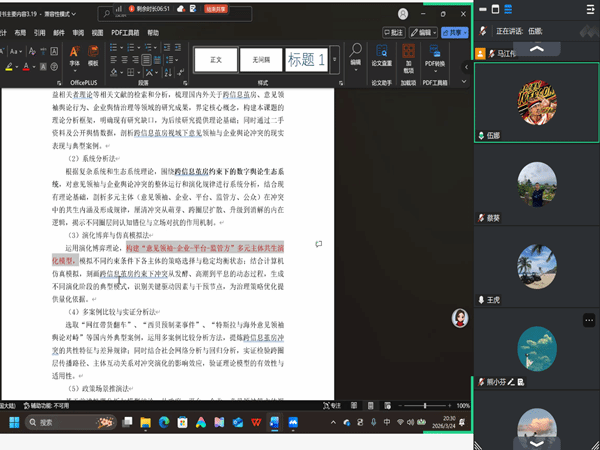 3月24日晚上,我院数智管理科研创新团队全体成员通过腾讯会议,召开了教育部人文社科项目申报书的专项评审会,本次会议由王虎教授主持召开,聚焦李琼老师牵头的项目申报书,通过云端协同、集思广益,为项目优化提质筑牢根基。