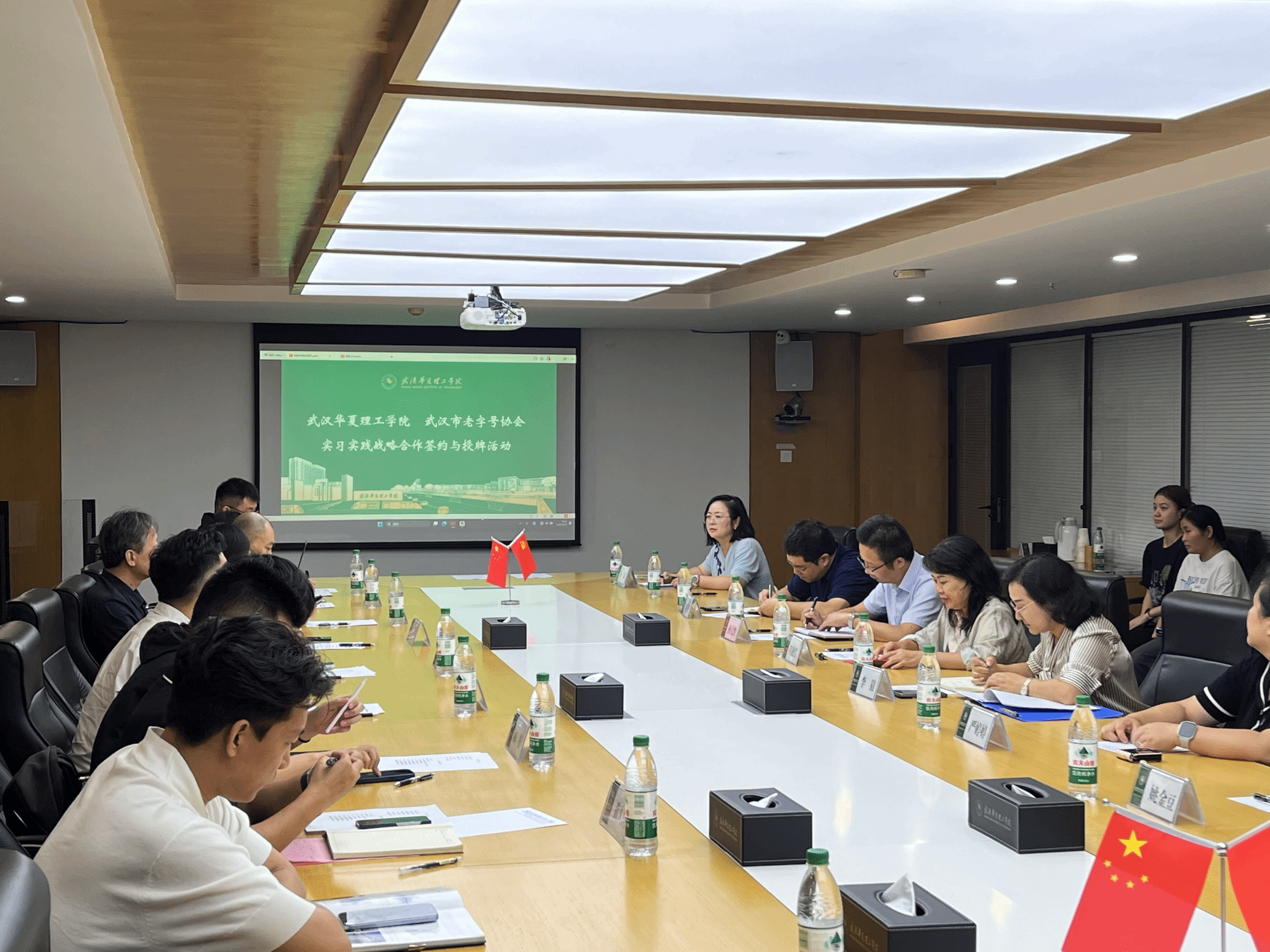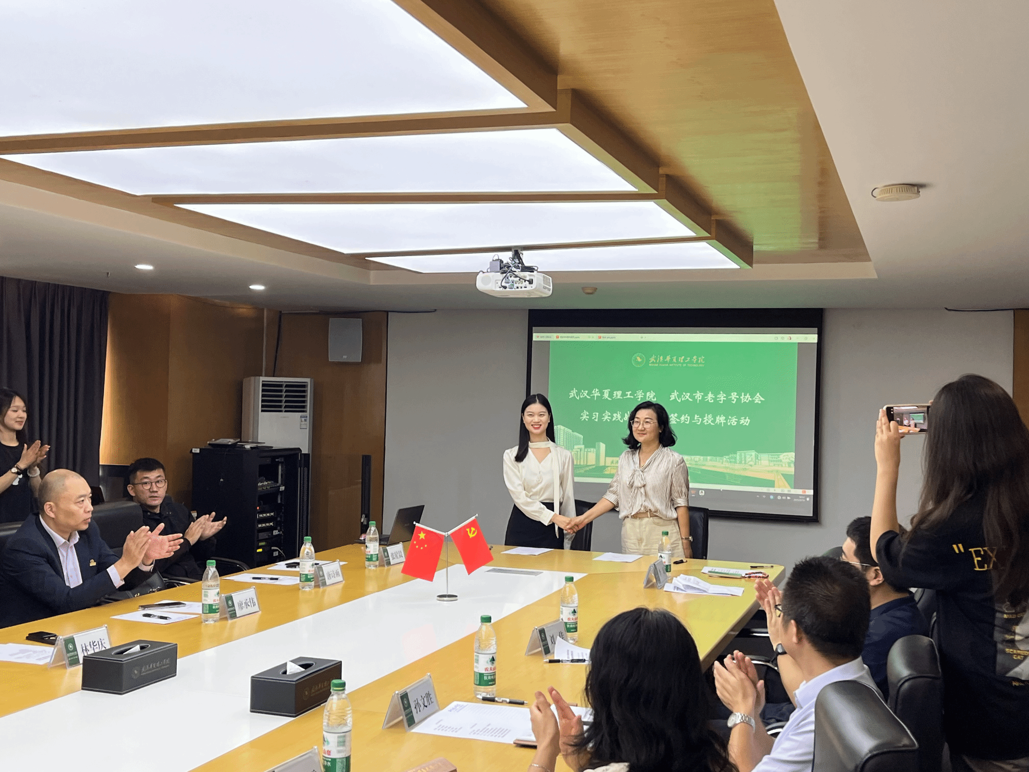 9月19日上午,武汉华夏理工学院商学院与武汉老字号协会实习就业基地签约仪式顺利举行。此次合作由商学院工商管理专业全程牵头推动,以工商管理(新媒体运营)、工商管理(智慧供应链)为核心方向,旨在打通“教学——实践”衔接通道,为专业人才培养搭建产教融合新载体。