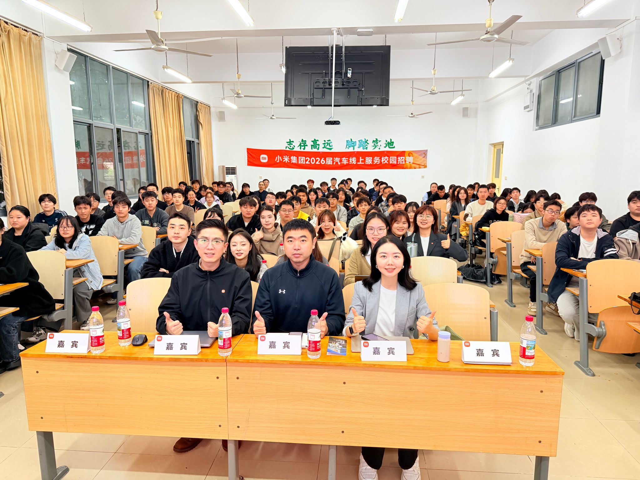 本次小米校招宣讲会,从企业文化深度解读到岗位详情全面答疑,从高效现场面试到互动福利回馈,以务实且贴心的形式,让武汉华夏理工学院的同学们不仅近距离接触到小米在汽车生态领域的前沿布局,更对新能源汽车服务行业的发展前景与人才需求有了全新认知。活动不仅为同学们未来的职业选择提供了清晰方向,也为即将踏入职场的他们注入了直面竞争的信心与底气;而小米集团也通过这场精准对接的宣讲会,为企业汽车业务板块储备优质人才打下坚实基础,实现了企业与高校人才培养的良性互动。