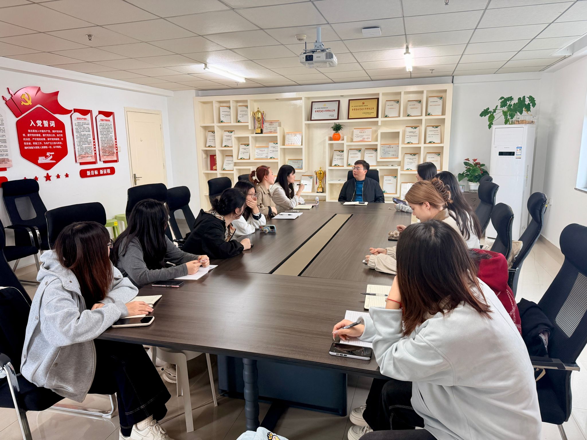 为扎实推进商学院2026年“经纬”简历求职大赛筹备工作,确保赛事有序高效开展,商学院党员服务站于4月9日中午12点15分于综合楼819会议室召开四月工作例会。会议围绕大赛整体流程、部门分工、细节落实等重点内容进行专项部署,指导老师杨洋与各部门负责人参会并深入讨论。