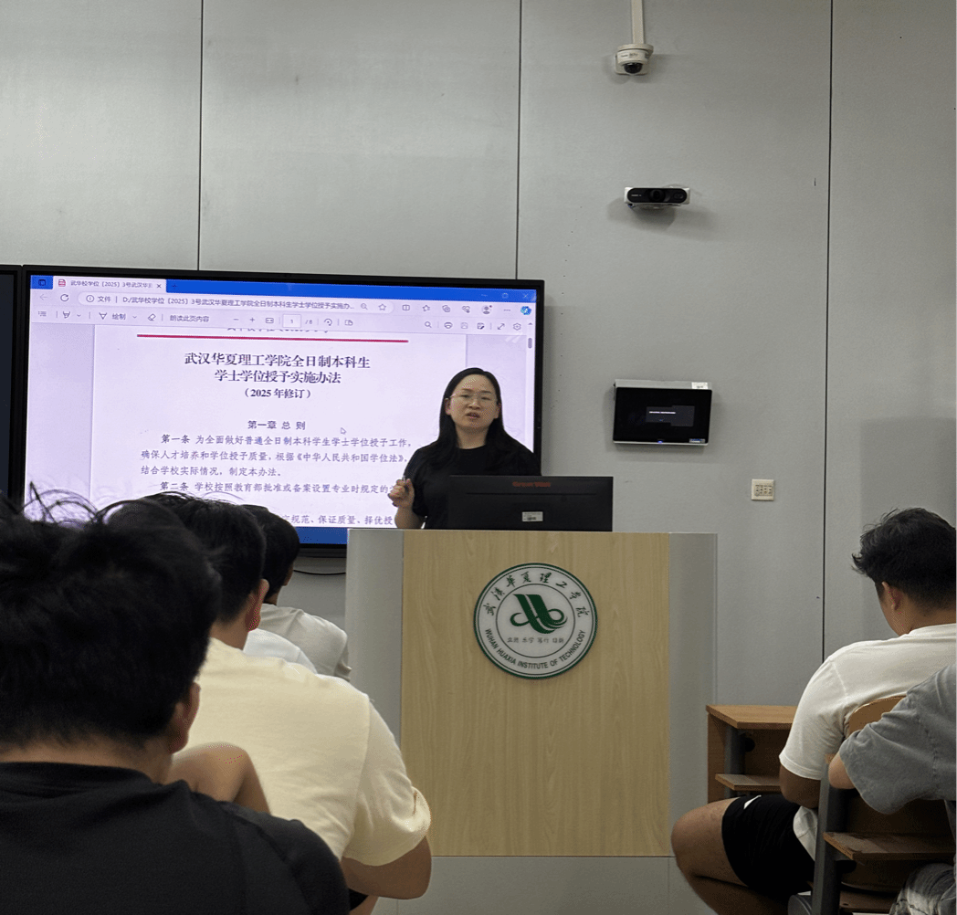 10月12日晚,土建学院23级专升本辅导员黄呈老师针对土木工程4个班,组织召开学士学位资格专题晚点评。此次晚点评以《武汉华夏理工学院全日制本科生学士学位授予实施办法(2025年修订)》(武华校学位〔2025〕3号)为指引,结合学生实际情况,为学生们指明学业规划路径。