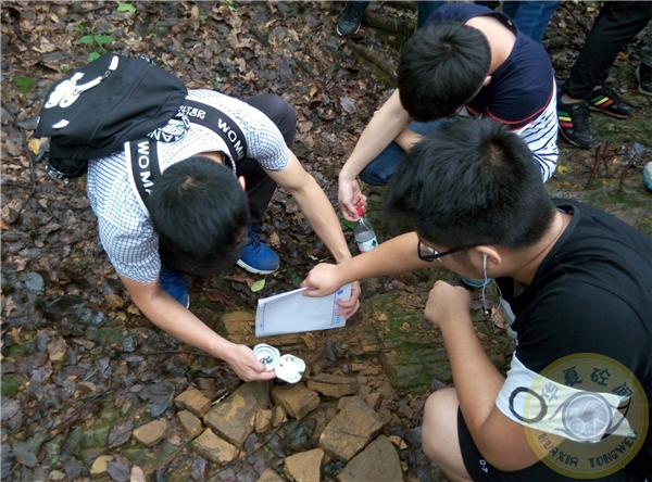 出于好奇,同学们7点30就来到学校门口等待。二十分钟后,在指导老师的带领下,大家搭乘着实习的车队顺利抵达中国地质大学。随后,实习队伍登上南望山-喻家山进行地质勘察。指导老师为大家简单的介绍了地层,褶皱、断层、及其他地质现象后,同学们以小组为单位实地操作了地质罗盘仪,在指导老师的引导下,同学们共对南望山3个地点,以及地质大学隧道等进行了勘测。期间,由于山上蚊虫较多,指导老师有心的为大家准备的风油精驱蚊。