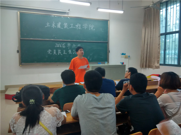 2016年6月19日下午1点,土木建筑工程学院在1-102教室召开2016届毕业生民主生活会,会议由学院党总支秘书吴振琦主持,全体2016届毕业生党员参加。