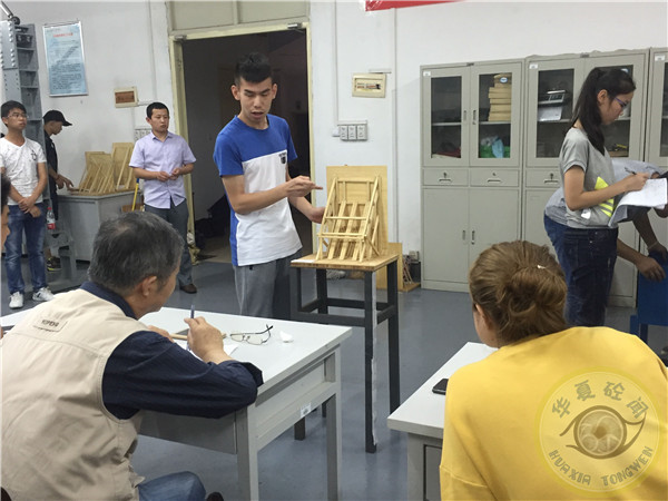 在众多的模型之中,来自第二十四组的模型别出心裁,在面板的底部利用两个较大的圆柱体支撑面板,十分新颖。而第十一组的模型则参照古代屏风结构而制作的,面板后面的支柱部分是一个"W"字母形状,从中间三根脊柱分别向后做了三根主力斜柱,构造巧妙,得到了几位评委老师的赞赏。