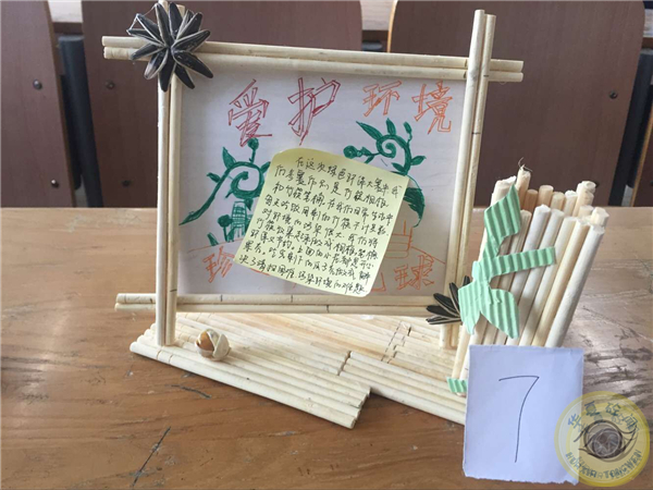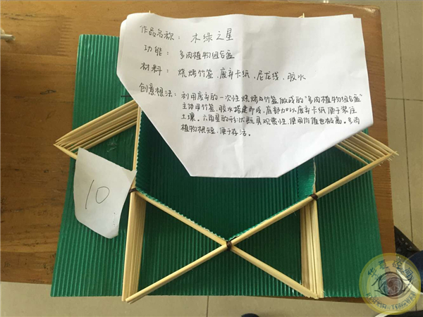据了解,参与此次绿色创意大赛的作品颇多,最终8号作品以精巧的创意和精细的做工夺魁。其他作品各有千秋,但无不体现环保的巧思。