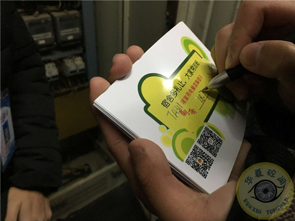 早上8点,青协副会长黎林语组织各协会参加义务用电提醒的志愿者签到并共同合影,随即分配了工作内容。这次活动共有四个小队,分别负责两栋楼的A区和B区,随后,志愿者与楼栋管理人员沟通,充当“义务抄表员”角色,志愿者在机房里仔细的对照着电表,依次按照楼层用卡片记录下电量低于30度的寝室号,然后将卡片粘贴在一楼展示板上,一些用电量不足的寝室的同学能够了解到剩余用电量,避免学生未及时充卡而停电的烦恼。