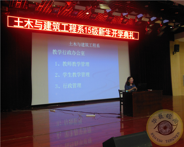 9月28日下午,我系2015级新生开学典礼于学术报告厅举行。土木系系主任杨和礼、土木系党总支书记陈伟、学工办主任潘晶、教学行政办主任袁健、土木系辅导员汪洋和土木系15级新生均参加了此次典礼。