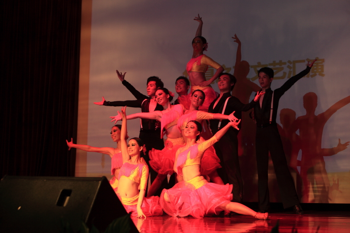 晚上7时,华夏之夜文艺汇演在报告厅举行,我院健美操队和拉丁舞队同学为企业家和在场观众献上了精彩纷呈的演出。