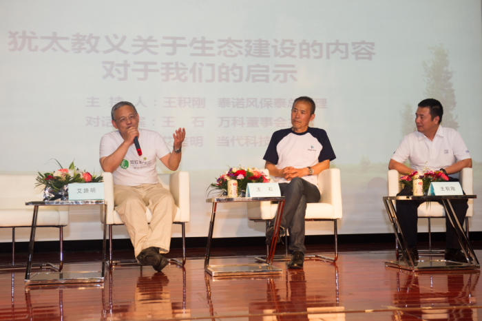 随后,王石、艾路明围绕“犹太教义关于生态建设的内容”对现代环保理念的借鉴意义进行了讨论。首创集团董事长刘晓光、云南红酒业公司董事长武克刚、台湾大成集团总裁韩家寰、立丰集团董事长颜明、绿地集团董事长钱晓华等企业家也分别畅谈绿色发展中的经济、技术与文化,从多角度阐释了环保的意义。