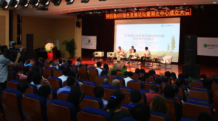 上午10:30,阿拉善SEE选委会通过民主投票,选举产生湖北中心主席艾路明、秘书长孔娜和三位副主席。下午2:30,湖北中心举行成立仪式,SEE绿色发展论坛正式开始。知名企业家王石发表讲话。他回顾了与阿拉善的渊源,并表示,在参与公益事业过程中“学会了妥协,学会了包容。”