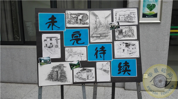 本次展览旨在展示城规1141班外出乡村规划的实践成果,丰富校园文化生活。此次展出的作品形式多样、内容丰富,具有强烈的艺术感染力。展出绘画作品共97幅,包括风景素描作品50幅,钢笔速写47幅,更有摄影作品若干。作品陈列于图书馆前,眼前栩栩如生的徽州风景引得参观者纷纷驻足观赏。