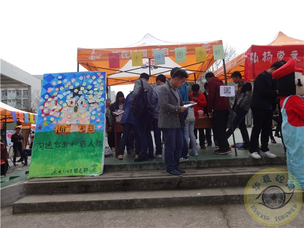 这次活动分为几批人,他们分别从同学与同学,同学与老师,还有与辅导员之间不同的人际关系情况进行采访,让他们与老师,辅导员之间进行对话采访,从对话内容以及方式体现出不同的人际关系;另外一批人出校采访服务员对待客户,以及快递哥对待送货不同的态度的采访,从侧面体现出和谐人际交往的重要性。活动内场就通过画海报,发微信微博进行宣传。截止3月27日外场活动已圆满结束。