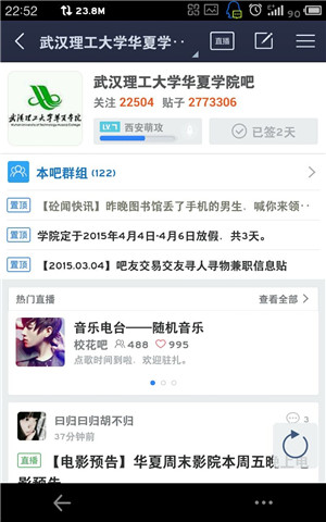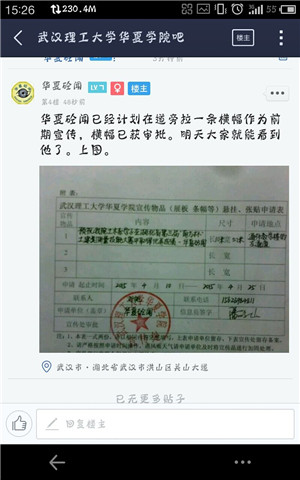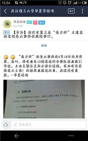 武汉理工大学华夏学院吧拥有关注人数2万多,华夏砼闻贴吧账号上线后,陆续发布失物招领,校园新闻等新鲜资讯。其中,一则失物招领和今天关于“湖北省第三届南方杯土建类测量技能大赛”前期宣传的帖子被置顶,反响良好。