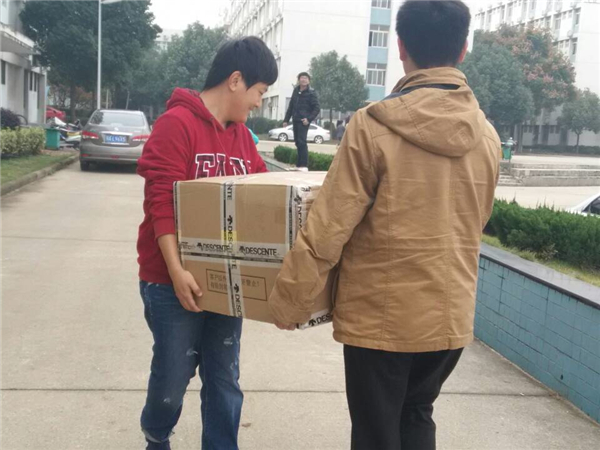 这一天很冷,可是在场的每一个人心都是暖暖的。青协的同学们在很早以前就做好准备,筹措好衣服、鞋子,寄给云南丽江贫困地区的学校和个人。他们拿着大包小包的衣物,前往邮局与小麦公社将同学们的爱心寄往远方。我们来到小麦公社旁,只见土木系青年志愿者协会的会长正聚精会神地填写着资料,她的眼神充斥着爱与善良。其它志愿者们也在帮忙清理物件,用团结的力量完成这次善举。