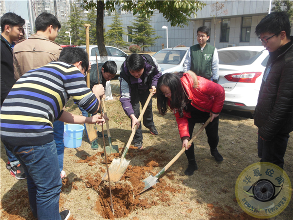 华夏砼闻3月12日讯,武汉理工大学华夏学院土木系青年志愿者协会在学院大学生事务中心旁的草坪上举办了植树节活动。