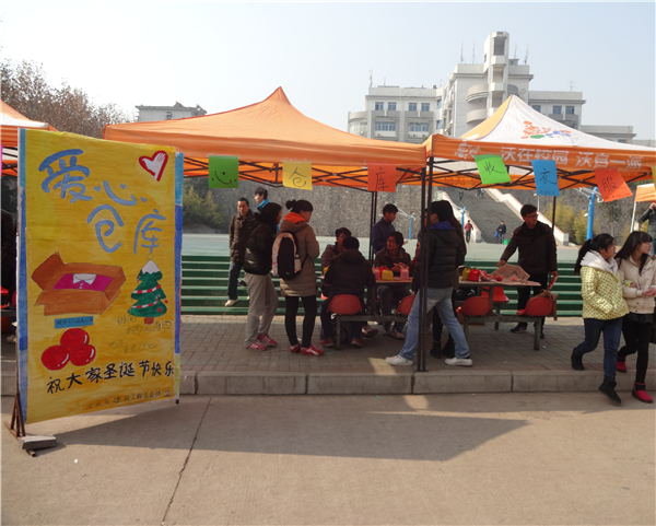 2014年12月24日,土木系青年年志愿者协会爱心仓库服务队在圣诞节平安夜来临前夕在一食堂门口举办旧衣物捐赠与邮寄费筹集活动。为贫困山区的孩子们在严寒的冬日里献上一丝温暖,活动一经启动,获得很大的反响。