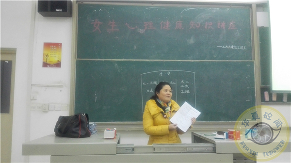 2015年1月6日晚六时15分,土木与建筑工程系在第二教学楼101教室开展了了女生安全心理健康知识讲座,土木系大一大二的全体女生到场来聆听这次讲座。