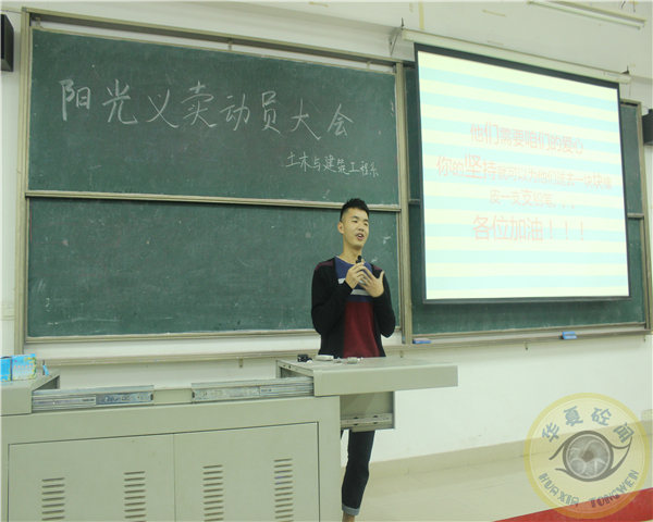 2014年11月6日17:40,土木与建筑工程系青年志愿者协会在2教201举行了阳光义卖动员大会,全体卖报志愿者准时到场。此次会议的主要目的是为即将到来的阳光义卖做好充分的准备,为志愿者们鼓劲、加油。